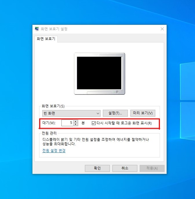 그옆에 보시면 다시 시작할 때 로그온 화면표시(R)가 있는데 이거는 말 그대로 화면보호기 작동한상태에서
